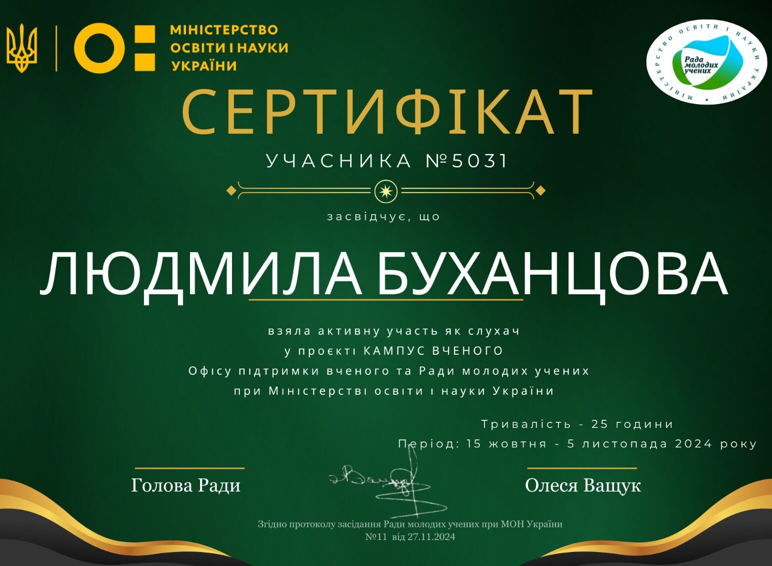Учасник міжнародної програми Young Entrepreneurs 2025, організованої Norwegian–Ukrainian Chamber of Commerce (NUCC) [08.09.2025-30.10.2025 рр.].