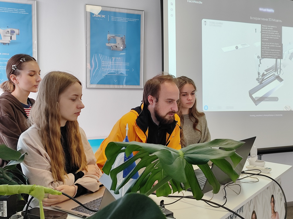 Учасники команди презентували студентам 2 курсу свої розробки що були виконані протягом доби хакатону 20-21 вересня. Команда успішно анімувала будову побутової швейної машини, створила її 3D модель та чат- бот з інструкціями та описами складових частин і механізмів машини. Крім того, всім бажаючим було запропоновано “зануритися в будову машини” використовуючи технології VR окулярів.