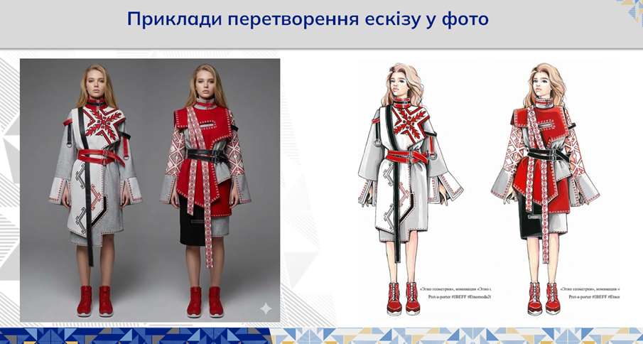 У ході майстер-класу Оксана продемонструвала, як Gemini AI аналізує завантажені ескізи та фотографії, зчитуючи силуети, пропорції, фактуру та ключові конструктивні елементи виробу. Після опрацювання даних модель перетворює лінійні ескізи на фотореалістичні зображення, максимально наближені до вигляду готового одягу. Студенти спостерігали, як AI автоматично додає текстури тканин, об’єм, світлотінь, матеріальність та деталізацію, значно підсилюючи якість візуальної презентації.