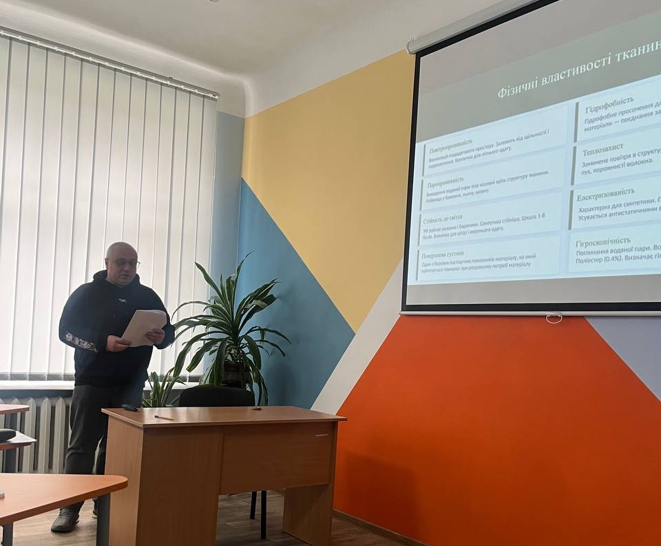 Під час лекції було розглянуто визначення та класифікацію характеристик тканин, механічні, фізичні та технологічні властивості матеріалів. Студенти дізналися про відмінності між пружною та пластичною деформацією, принцип дії мембранних матеріалів, а також наслідки недооцінки усадки тканини у технологічному процесі.