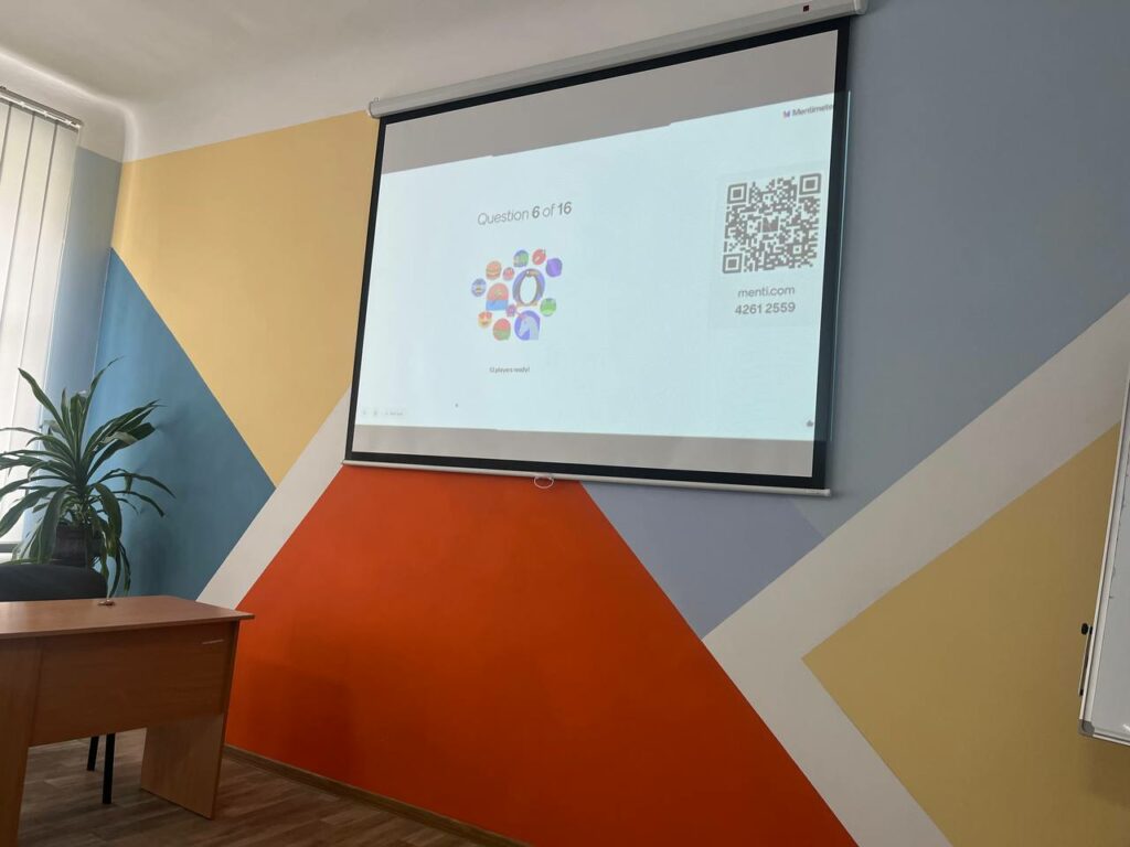 Особливу зацікавленість у здобувачів освіти викликав інтерактивний формат проведення заняття. Після кожного тематичного блоку студенти проходили тестування через платформу Mentimeter. Кожен блок містив по 4 запитання, на відповідь до яких відводилося лише 15 секунд. Такий підхід дозволив підтримувати високу активність аудиторії та перетворив перевірку знань на динамічне інтелектуальне змагання.