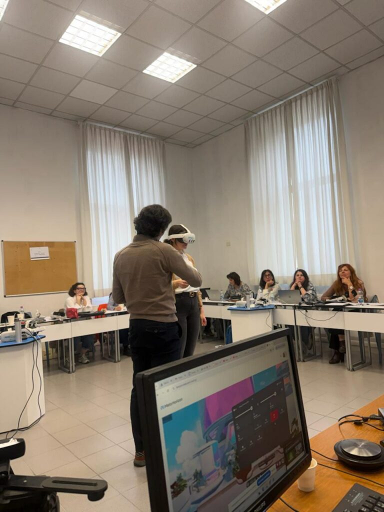 Програма розпочалася з інституційного відкриття, під час якого Alessandro De Rosa презентував педагогічне бачення проєкту MetaSkill та його освітні цілі, після чого Iacopo Bernetti провів теоретичний блок, присвячений аналізу використання VR в освітній галузі з розглядом реальних кейсів та сценаріїв застосування. Наступним етапом стала технічна сесія, що охоплювала практичне навчання роботі з гарнітурами, а також вивчення правил безпеки та ергономіки при використанні VR-обладнання, що плавно перейшло в інсталяційну частину, де учасники опановували процес встановлення додатків та роботу з відеоконтентом для імерсивного навчання. Завершився захід детальним ознайомленням з MetaSkill VR App, яке забезпечило перше занурення у функціонал цієї професійної програми.