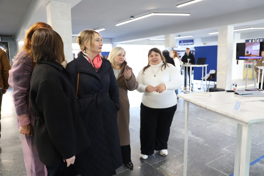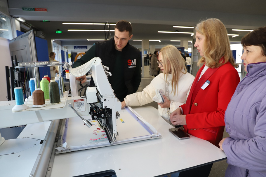 Активну учать у підготовці до фестивалю прийняли аспіранти cпеціальності – G15 Технології легкої промисловості: аспірант групи ТЛПас-23-2 Оксана ХАСАНОВА та аспіранти ТЛПас-25-1 Дмитро КОВАЛЬЧУК та Альона ДЯКОВА. Аспіранти координували роботу виставкового простору де демонстрували свої напрацювання та знайомили з цифровими інноваціями в промисловості.