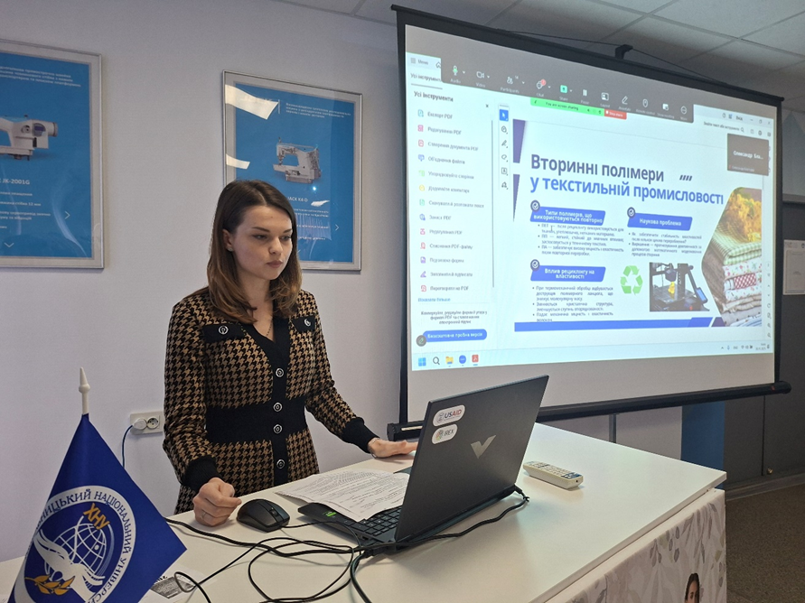 Тетяна ІЩУК, аспірант групи ТЛПас-25-1, асистент кафедри хімії та хімічної інженерії, висвітлила питання прогнозування довговічності текстильних матеріалів на основі полімерів вторинного походження.