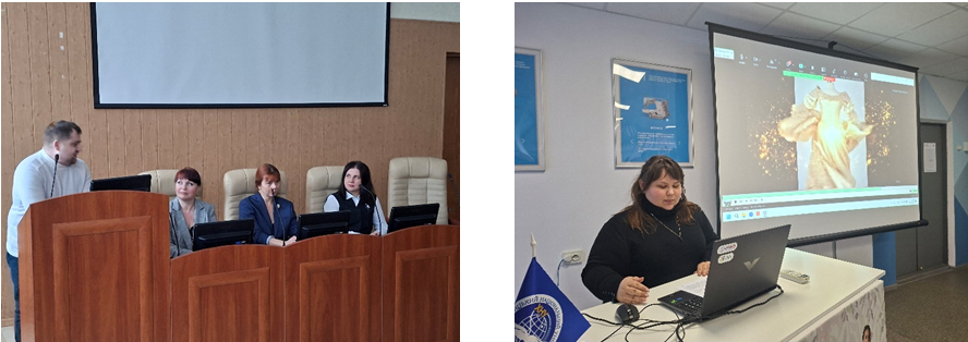 Оксана ХАСАНОВА, аспірант групи ТЛПас-23-1, асистент кафедри технології і конструювання швейних виробів, розповіла про особливості створення фіджитальної колекції за допомогою штучного інтелекту. Віта НЕГОРУЙ аспірант групи ТЛПас-23-1, асистент кафедри хімії та хімічної інженерії, розповіла про вплив технології антимікробної обробки на гігієнічні властивості флісу – секція Clothing Technology and Design.